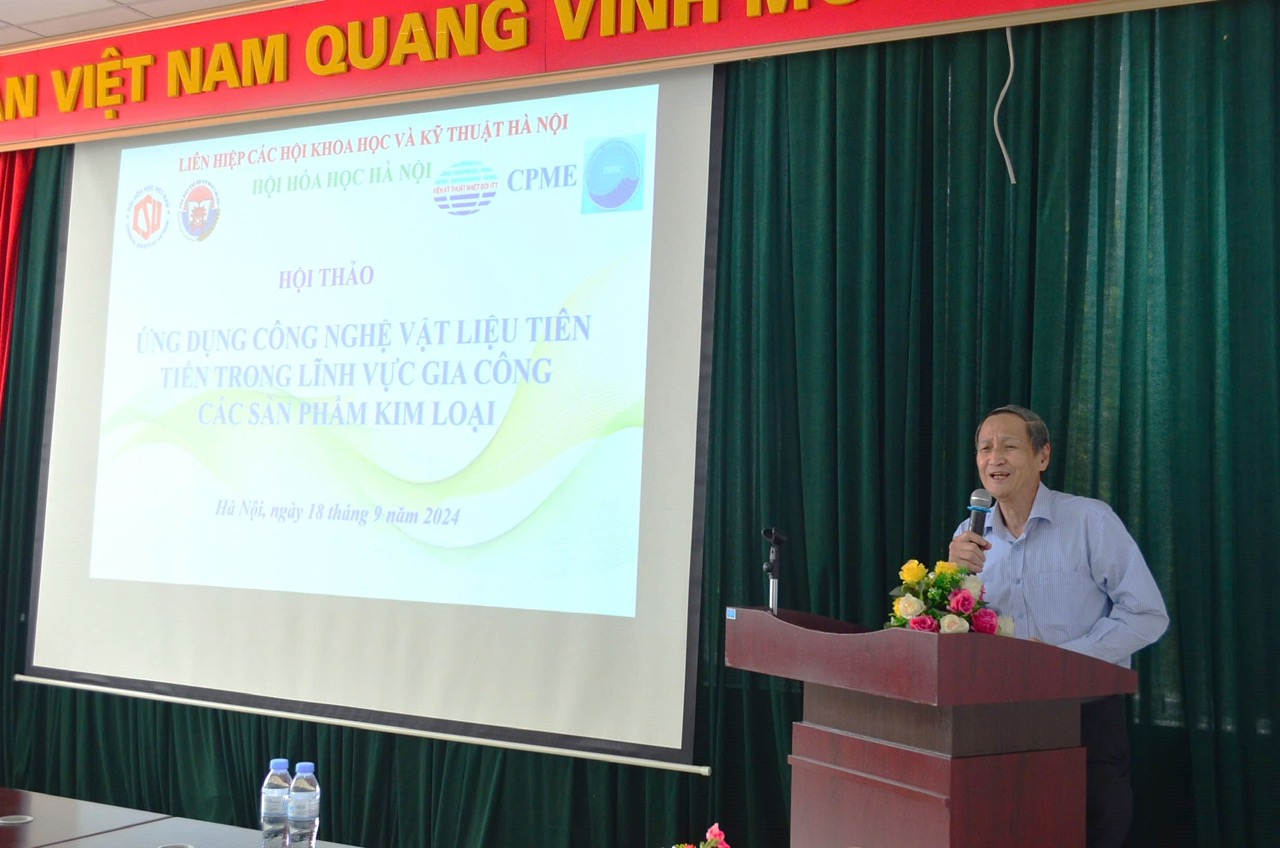Ngày 18 tháng 9 năm 2024, Hội Hóa học Hà Nội đã tổ chức thành công Hội thảo Khoa học với chủ đề “Ứng dụng Công nghệ Vật liệu Tiên tiến trong lĩnh vực Gia công các sản phẩm kim loại.” Sự kiện diễn ra tại Hội trường Viện Hóa sinh biển (Tòa nhà A23), Viện Hàn lâm Khoa học và Công nghệ Việt Nam, thu hút sự tham gia của hơn 50 đại biểu đến từ các viện nghiên cứu, trường đại học, doanh nghiệp và các tổ chức khoa học kỹ thuật trên ở khu vực Vùng thủ đô.